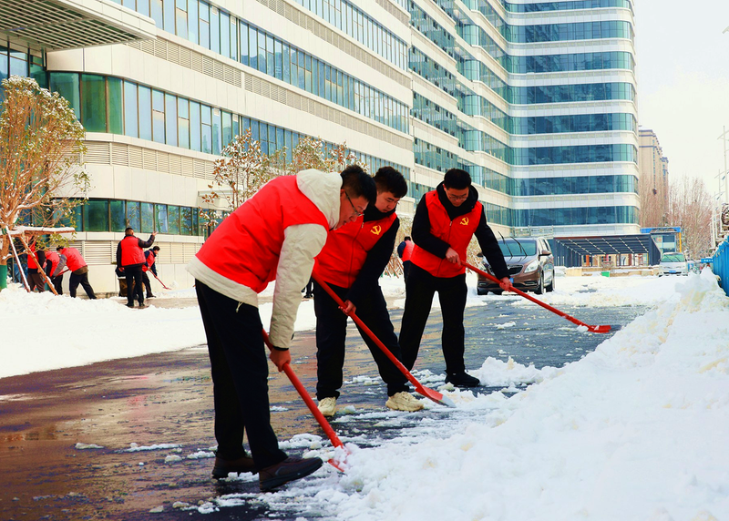 ①近日,中铁十局二公司组织团员青年在郑州航空港区总部基地开展义务除雪活动,以实际行动弘扬雷锋精神,传承志愿服务理念。 向炀 杨子征 摄影报道