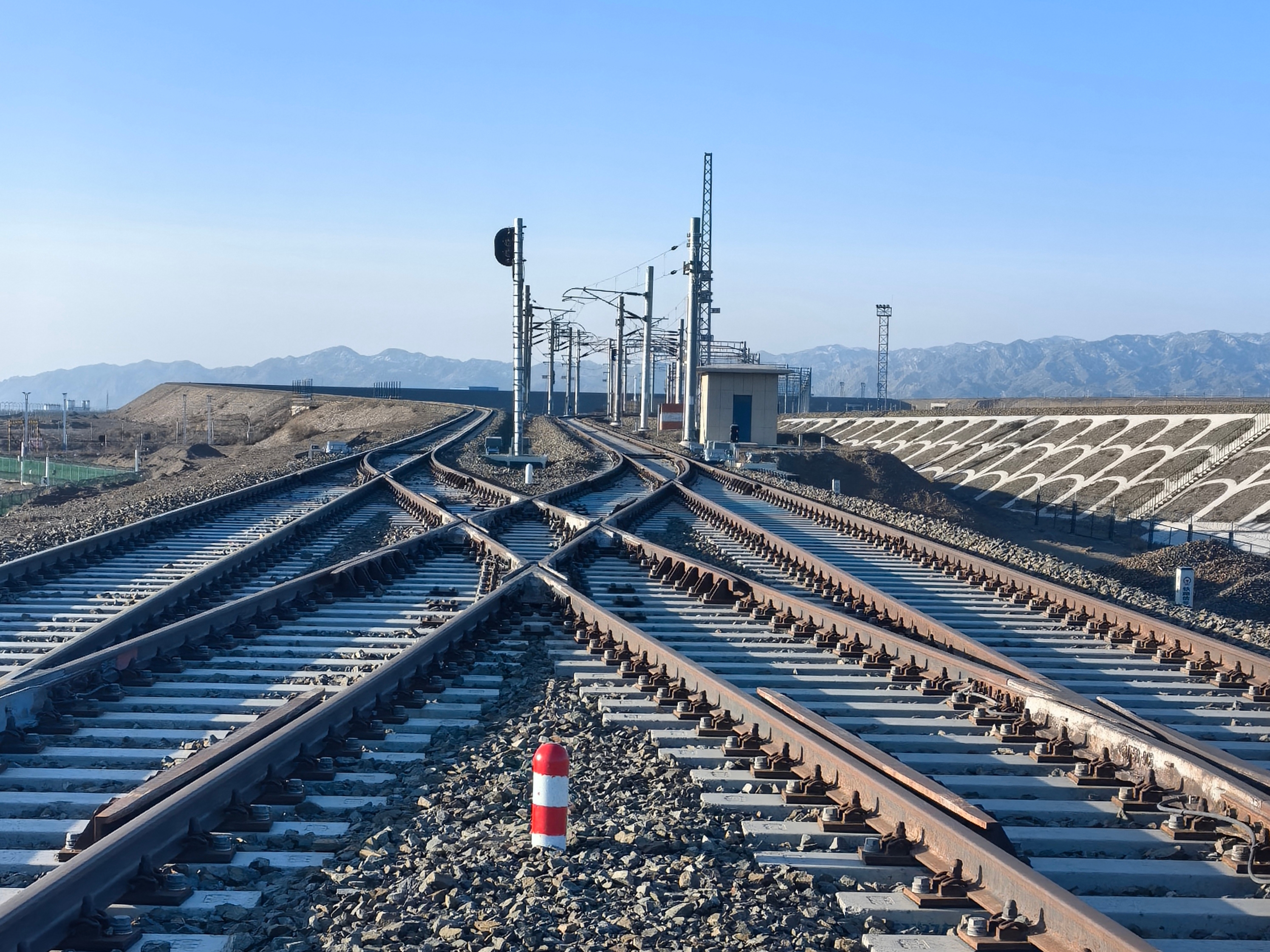 该线路位于新疆维吾尔自治区博尔塔拉蒙古自治州阿拉山口市内,全长2.812公里。阿拉山口口岸是中欧班列西出国门的关键节点,承担着散粮、钾肥、跨境电商等重多物资的换装任务。随着进出口货运量持续攀升,散粮铁路制约了运输效率。本次改造为散粮铁路引入微机联锁控制系统,具备故障自诊断与安全报警功能,实现从“人控”到“智控”的跨越式转变,为口岸运输装上“智慧大脑”。中铁六局施工内容包括“四电”专业以及道岔换铺、线路整修等。